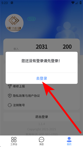2、在弹出的提示框中,点击去登录,进入登录页面。