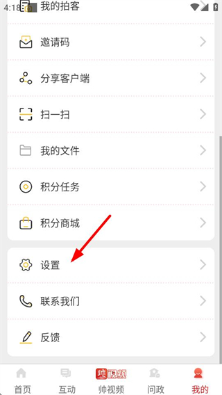 2、进入我的页面后,找到并点击设置选项,可进入设置界面。