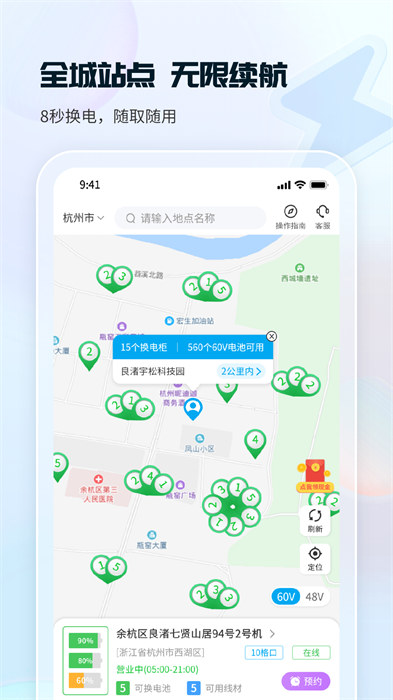 覆盖全区域换电站点,随时查看附近站点位置信息