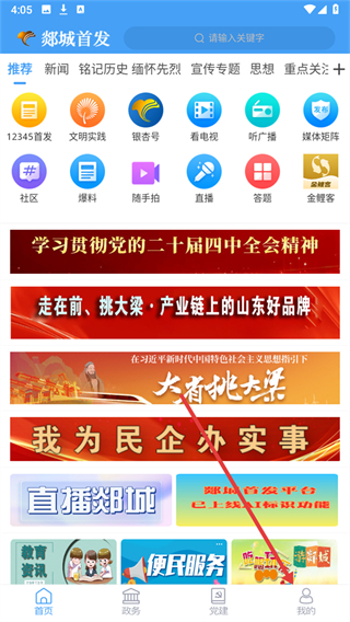 郯城首发app,一个专门为该地的人们打造的综合性融媒服务软件,集新闻资讯、生活服务、政务服务、党建教育等多项功能为一体,依托强大的技术为用户创造了一站式的智慧便民平台,大家可以通过APP来在线申请办理各种业务,享受便捷的同城服务等,同时也是展示该地风貌的重要阵地,有需要的朋友快来下载体验吧~