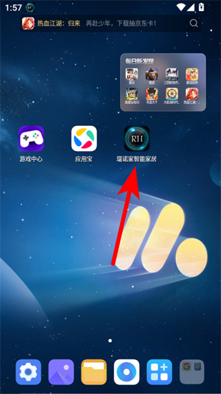 1、打开瑞诺家智能家居APP,进入登录页面。