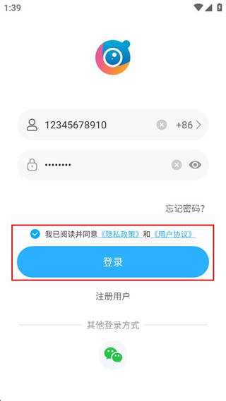 4、勾选同意协议后点击登录按钮,完成账号登录操作。