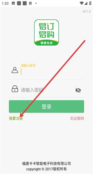 2、在登录界面,点击我要注册选项,进入用户注册界面。