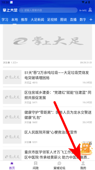 1、在掌上大足APP首页,点击右下角我的选项,进入个人中心界面。