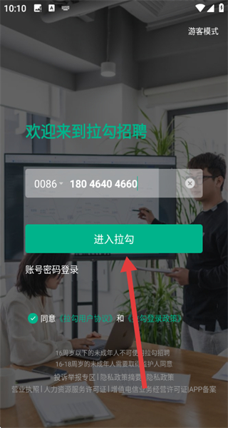 3、完成手机号码信息输入后,即可点击进入拉勾进行验证操作。