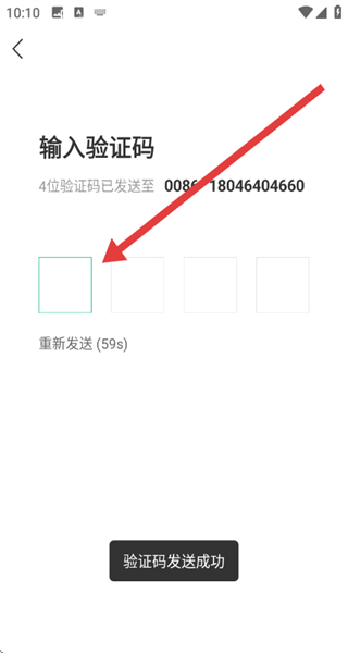 4、在验证码输入界面,输入收到的4位短信验证码,完成账号注册登录操作。