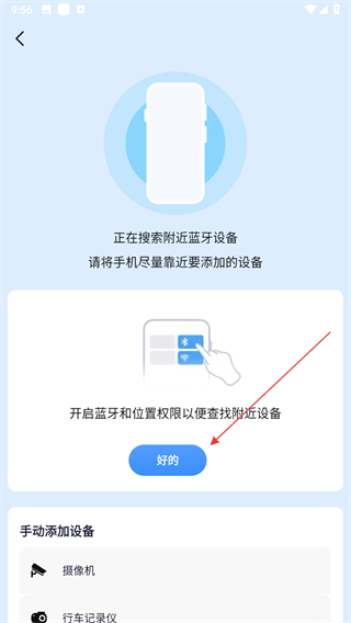 3、在搜索设备页面,点击好的按钮,开启蓝牙和位置权限。
