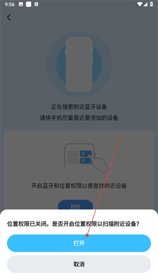 4、点击后弹出位置权限未开启提示框,点击打开按钮进行开启。