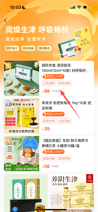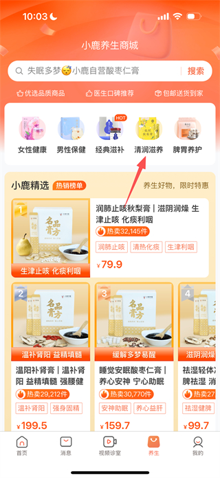 2、在小鹿养生商城页面,点击目标分类,进入对应商品列表页面。
