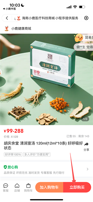 4、在微信小程序,点击立即购买按钮,即可购买该药品。