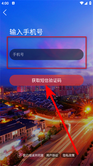4、在注册页面,输入手机号后,点击获取短信验证。