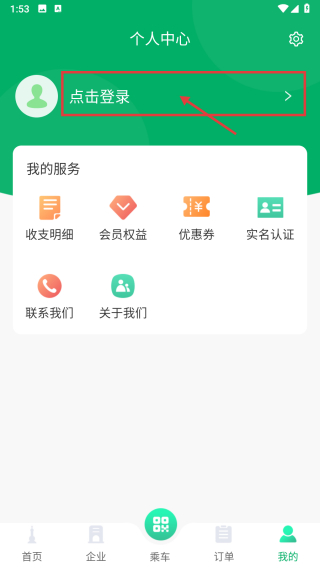 2、在个人中心,点击点击登录区域,进入登录/注册选择界面。