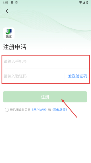 4、输入手机号码和验证码,点击注册按钮,完成账号注册操作。