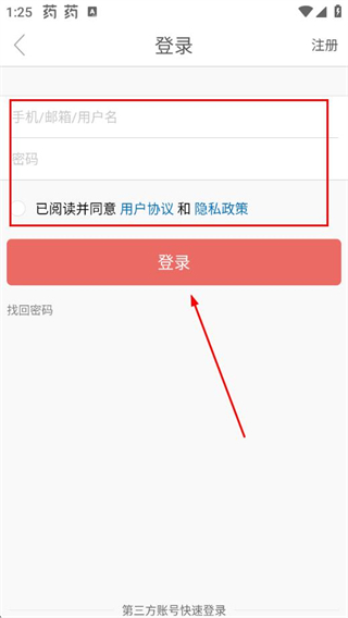 3、输入手机/邮箱/用户名和密码,勾选协议点击登录即可。