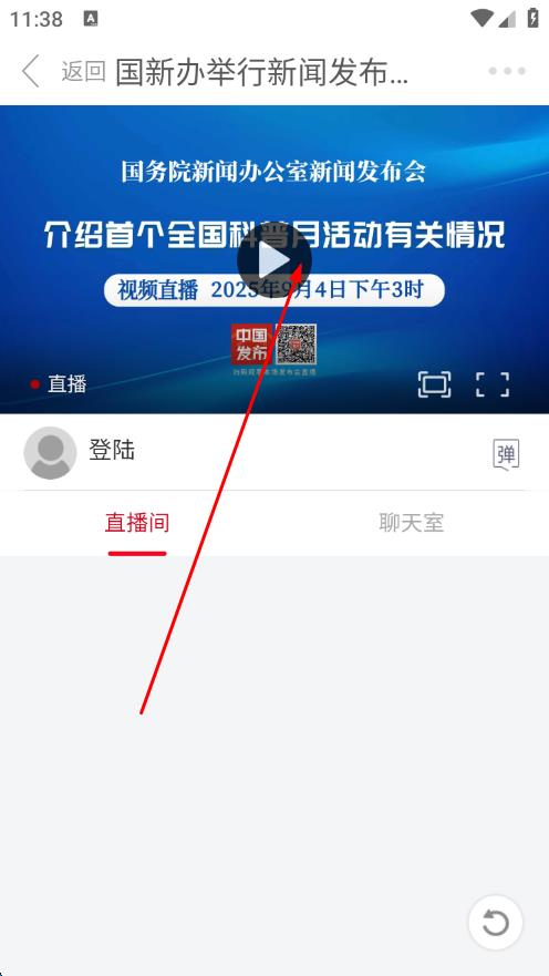 3、进入视频详情页,点击播放按钮,即可观看直播。
