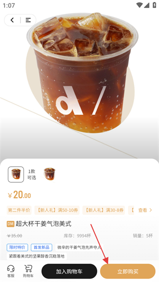 2、在点单页面,选择目标门店,点击对应商品进入详情页。