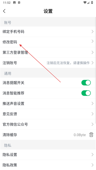 3、点击修改密码选项,进入修改密码页面。