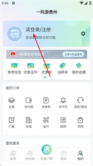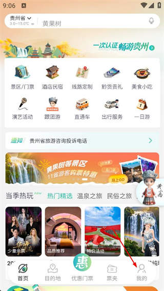1、在一码游贵州首页点击底部我的,进入我的页面。