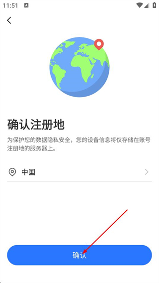 2、在确认注册地界面,确认注册地为中国后点击确认,进入信息填写页。
