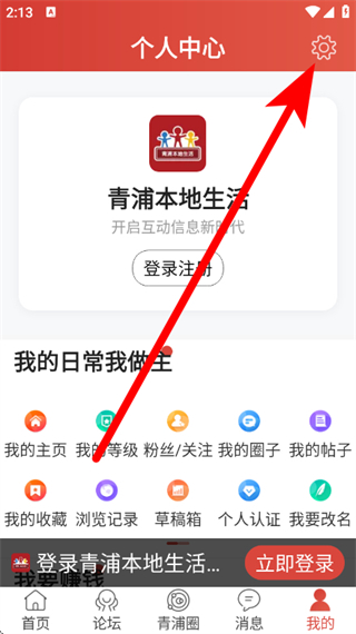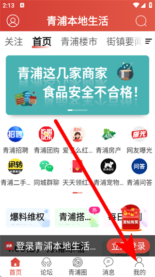 1、打开青浦本地生活,点击底部我的,进入个人中心。