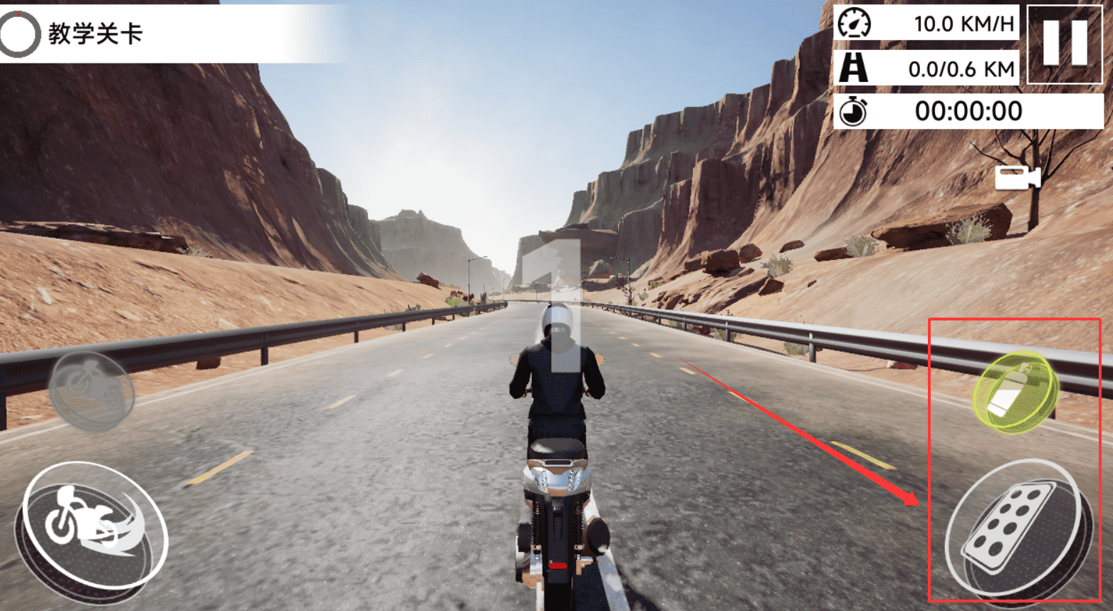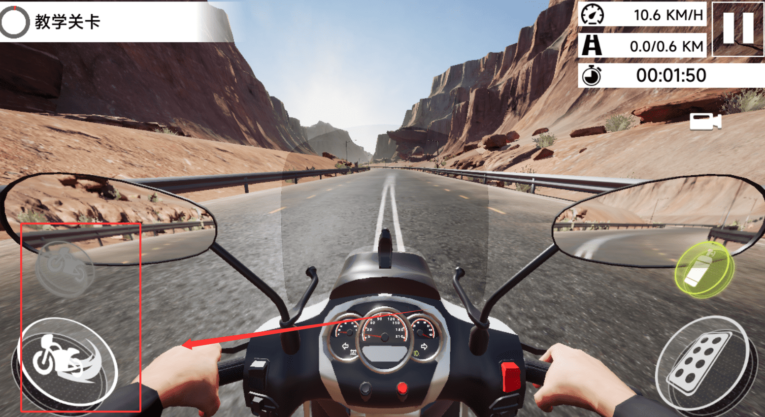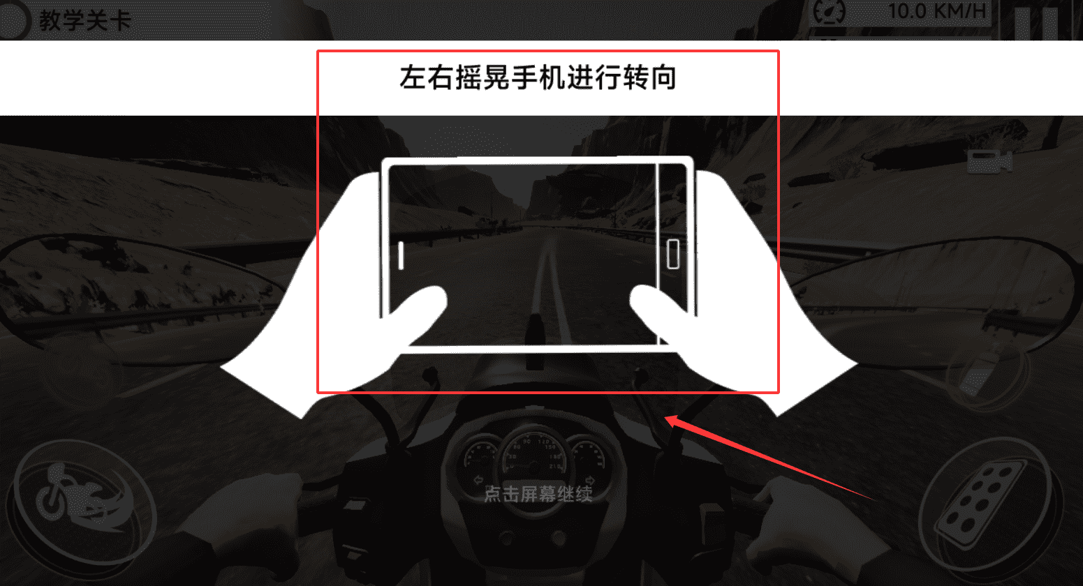 1、玩家通过重力感应操控摩托车左右移动,点击屏幕实现减速功能,在比赛中需时刻观察路况。
