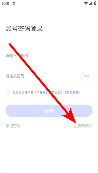2、在账号密码登录页面,点击注册新户,进入注册页面。