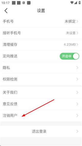 3、在设置页面点击注销用户,进入用户注销协议页面。