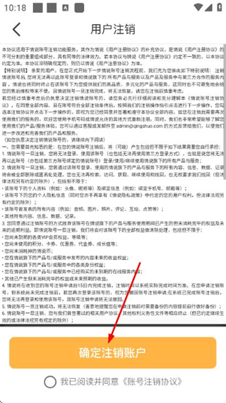 4、在用户注销页面勾选账号注销协议后,点击确定注销账户完成注销操作。