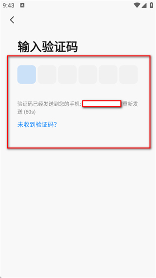 4、在输入验证码页面,将收到的验证码,填入对应输入框中。