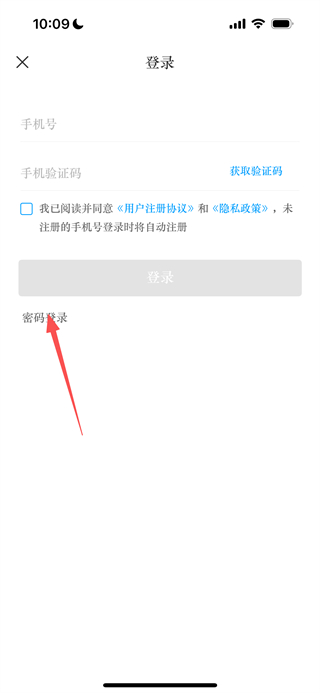 3、在登录页面,点击密码登录选项,切换至密码登录模式。