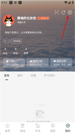 2、在我的页面点击右上角的设置图标,进入编辑资料页面。