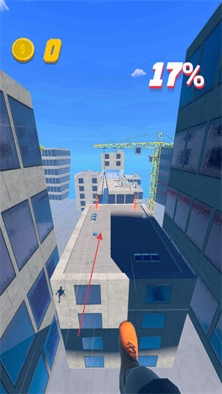 以第一人称视角呈现跑酷过程,高空穿梭的视觉冲击强烈,仿佛亲身在高楼之间跳跃滑行,大幅提升代入感与刺激感。