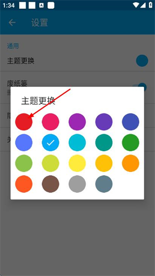 3、在设置页面点击主题更换,弹出主题颜色选择窗口。