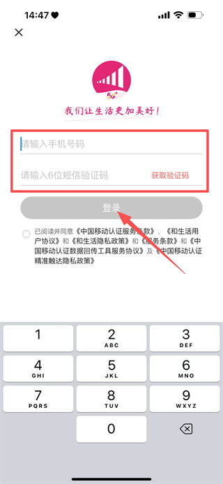 4、输入手机号码,获取验证码并填写后,点击登录完成账号登录。