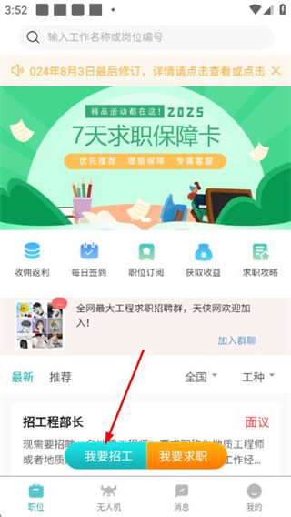 1、在天侠网首页点击我要招工,进入发布职位页面。