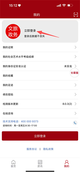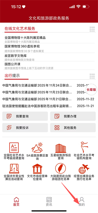 2、在文旅政务首页,点击底部我的,即可进入个人中心页面。