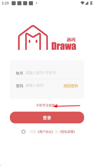 1、在登录页面点击手机号注册登录,切换到手机号验证码登录模式。