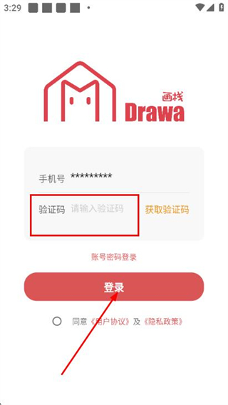 3、在输入框中填写验证码,勾选协议后,点击登录完成账号登录操作。
