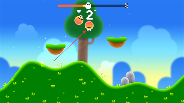 2、角色跳跃移动,跟随路径前进,保持节奏向终点旗帜靠近。