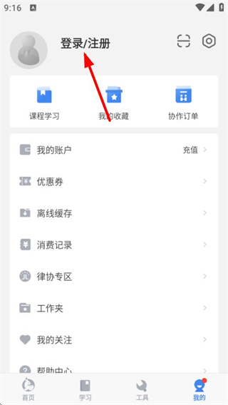 2、在个人中心页面,点击登录注册区域,进入登录页面。