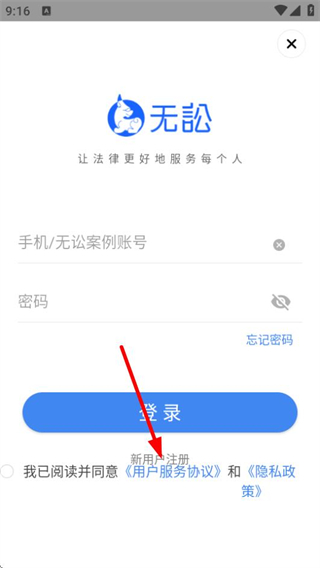 3、在登录页面,点击新用户注册选项,进入注册信息填写页面。