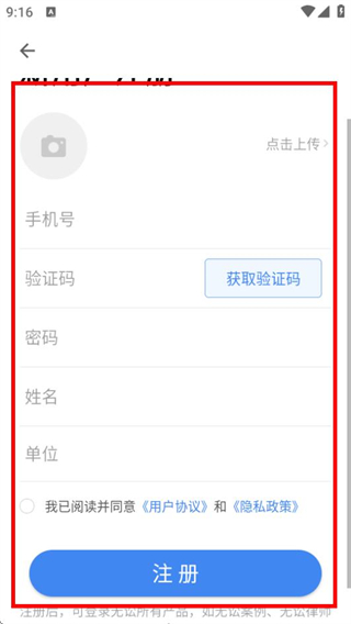 4、在注册页面,填写信息并勾选协议后,点击注册完成账号注册。