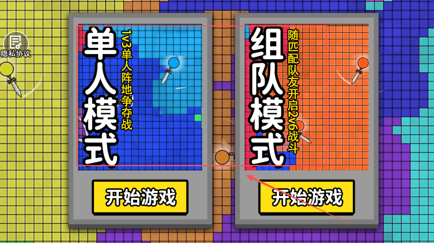 球球领土争夺战休闲对战手游,采用鲜明像素2D美术风格,玩家需挑选特定颜色小人投入竞技,利用武器击退其他竞争者并将地图区域转化为自身颜色,在限定时间结束后依据所占颜色面积大小决定最终胜者。