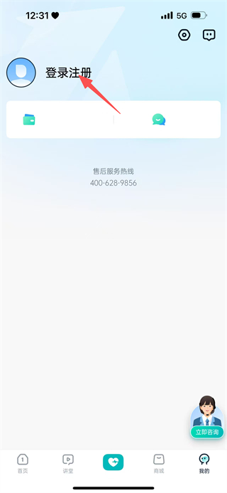 3、在个人中心页面,点击登录注册,进入登录界面。