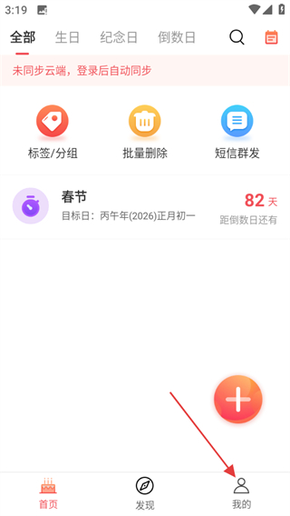 1、在生日助手的首页,点击底部的我的选项,进入个人中心页面。