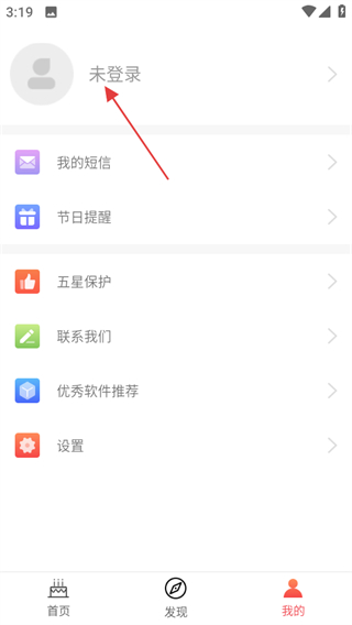 2、在个人中心页面,点击未登录区域,进入登录方式选择页面。