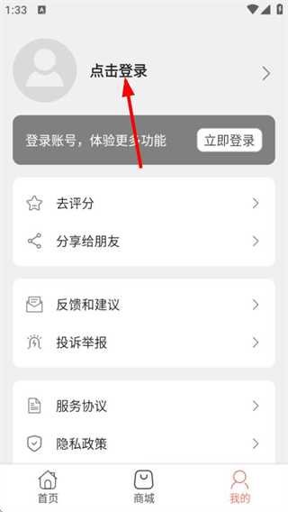 2、在个人中心页面,点击点击登录区域,进入登录页面。