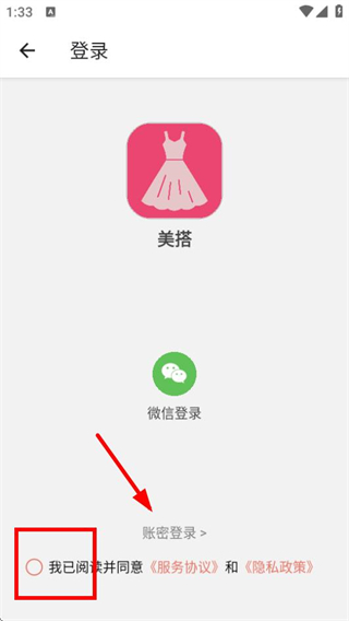 3、在登录页面,勾选协议后点击账密登录选项,进入账号密码登录界面。