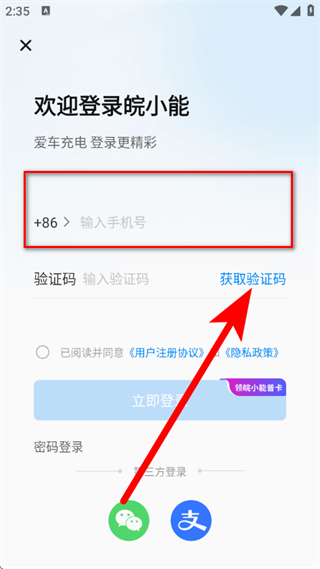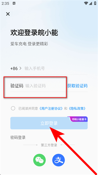 4、在输入框中,输入验证码,勾选协议后,点击立即登录,完成登录。