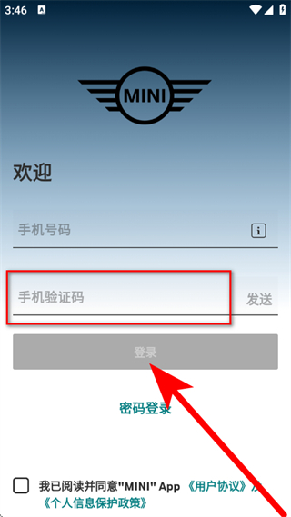 4、在输入框中填入收到的验证码,勾选协议后,点击登录。